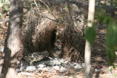 The males of this species spend most of the year building, maintaining, improving and decorating the bower you can see in the picture in an attempt to outrival their peers, a phenomenon that is commonly referred to as “keeping up with the Joneses” in the human world. In Australia the philosophy of “keeping up with the Joneses” is widespread and often equated with the catchphrase of the “great Australian dream”.
